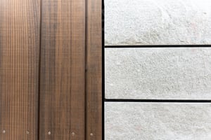 Granitsteine, in einer Spezial-Unterkonstruktion eingehängt.